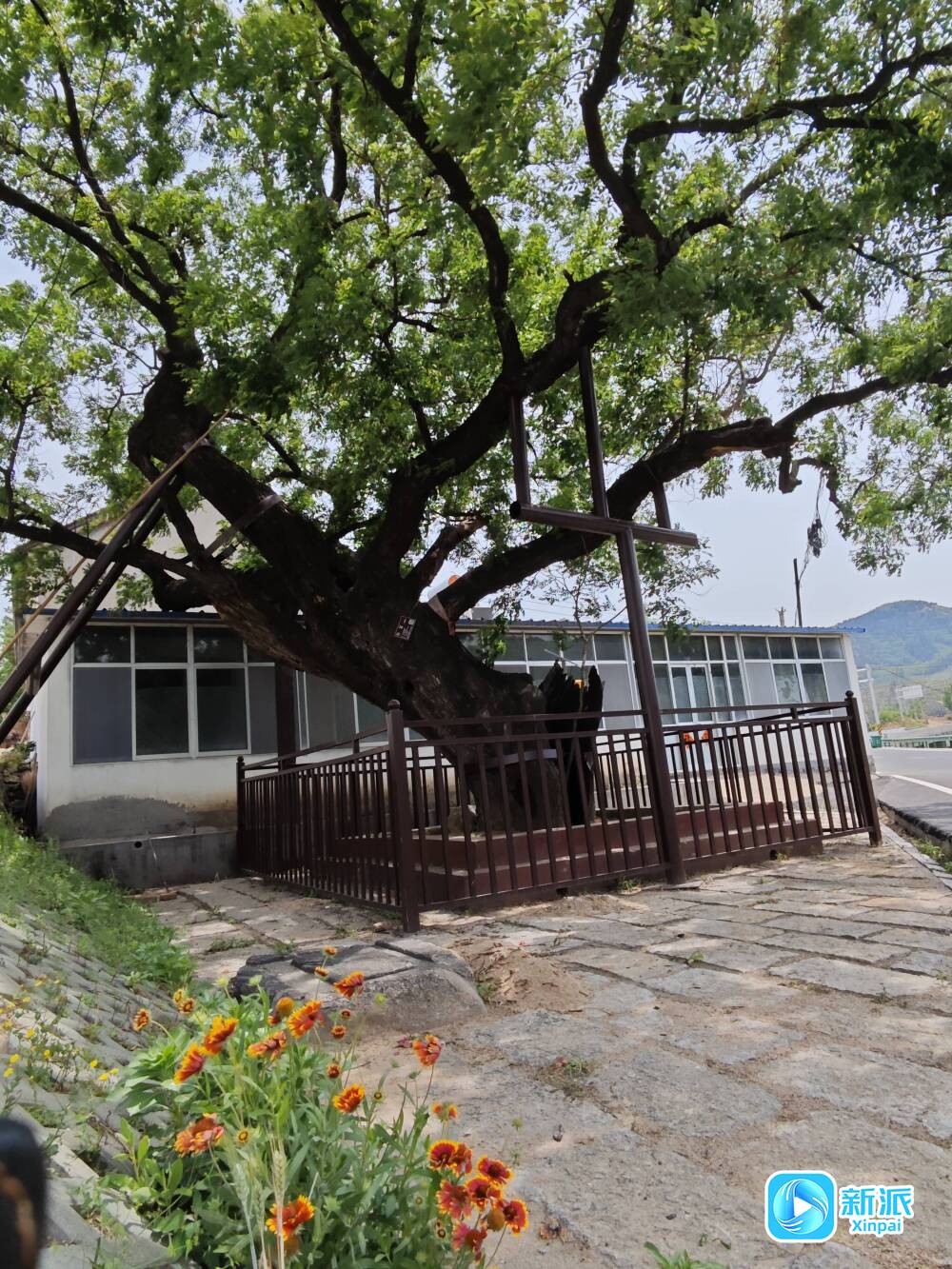 在潍坊临朐县石家河生态经济发展服务中心,沿着新修的石蜂路向南,行至老庄子村,山峦叠嶂间,一株500岁的国槐挺立路旁。尽管粗壮的树干布满岁月的沟壑,它的枝头却依然枝叶葱茏,默默见证着这片土地上的沧海桑田。