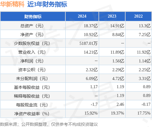 从目前公布的财报来看,华新精科2024年总资产为18.37亿元,净资产为10.92亿元;近3年净利润分别为nan元(2024年),1.56亿元(2023年),1.14亿元(2022年)。详情见下表: