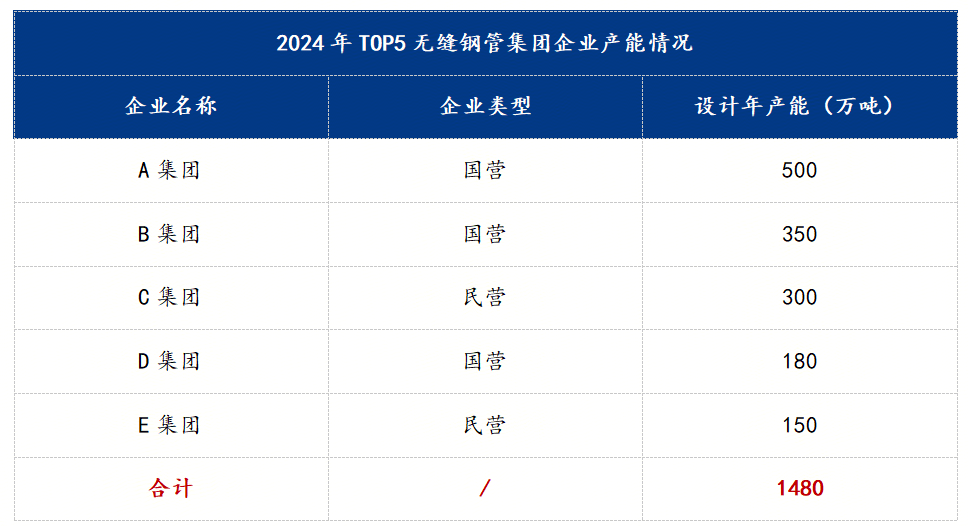 不过近年来,国内无缝钢管兼并重组步伐有明显加快迹象。据Mysteel对全国无缝钢管集团企业产能调研情况来看,TOP5集团企业产能占比尚可,总产能达到1480万吨,占比全年热轧无缝钢管产能达到35.31%。