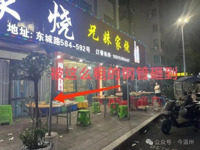 温州龙港女子用餐遭钢管突袭 意外引发赔偿争议!方女士在五一期间与家人到龙港东城路一家名为“兄妹家烧”的排挡就餐时,遭遇了意外。用餐过程中,一根钢管突然砸向她的头部。方女士随即被送往医院进行CT检查,结果显示颅骨没有骨折,颅内也没有出血,但头部肿起了一个大包。自那以后,她一直感到不适,包括头痛、睡眠问题和耳鸣。