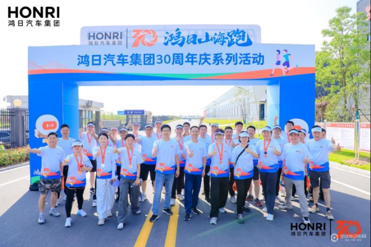 奔赴山海,共启新章。在“山海跑”的起点,鸿日汽车集团主要领导依次在30周年主题纪念旗帜上签名,每一笔都是对过往的铭记与对未来发展的坚定承诺。而在终点,当鸿日人奋勇冲线,收获的不仅是奖牌,更是“再跑三十年”的坚定信念。
