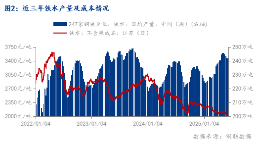 在2024年第四季度钢材价格持续下行压力下,铁水产量未在低位维持太久;反而与往年相似,在一季度快速增加至240万吨/天,直至5月第二周才开始回落,6月第一周仍在241.8万吨/天的相对高位。