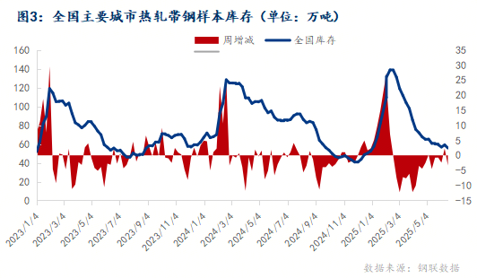 回顾2025年2-5月,国内热轧带钢产量变化节奏与去年基本保持一致,在阶段性减产后逐步恢复增长态势,整体供应维持高位运行。值得注意的是,库存水平却呈现急速下滑趋势,显著低于去年同期水平,这在一定程度上表明,今年一季度国内外市场对热轧带钢的需求总量相较去年更为旺盛。