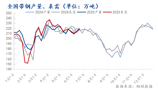Mysteel解读:Mysteel聚焦钢铁产业数据(2025年6月12日-2025年6月19日)——五大品种钢材供给需求增库存降,关注淡季钢材累库情况