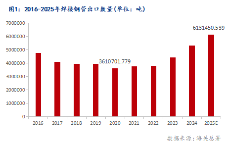 概述:近年来,国际经济形势日益严峻,进出口领域贸易摩擦与反倾销冲突频发。在复杂的国际贸易环境下,2025年中国焊接钢管(以下简称“焊管”)出口仍展现出较强韧性。海关数据显示,2025年1–9月,中国累计出口焊管459.86万吨,同比增长20.85%。尽管焊管出口量保持同比大幅增长,但在2024年全年出口532.96万吨的高基数背景下,预计2025年四季度中国焊管出口同比增速将有所放缓,另外关税壁垒和反倾销调查等不确定因素增多,中国焊管出口面临机遇与挑战并存。本文将从出口表现、出口结构以及出口趋势与挑战三个方面展开分析。