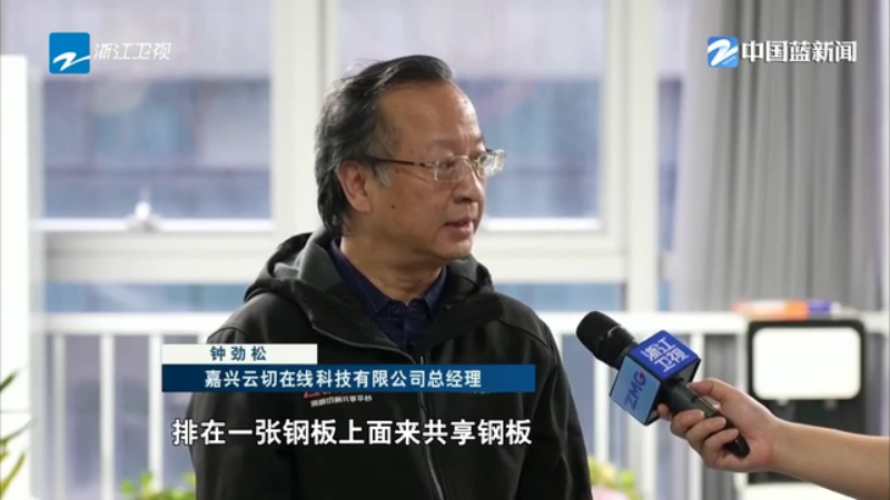 嘉兴云切在线科技有限公司总经理 钟劲松:通过AI系统把不同客户的同材质、同板厚、同交期的订单排在一张钢板上面来共享钢板,使得原材料的利用率大幅提升。