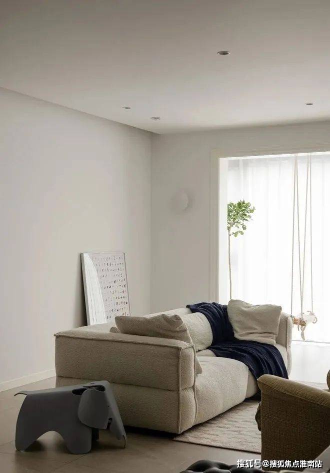 客厅无主灯,灯光层次更丰富,再搭配一盏纯白LPHat壁灯,精致小巧,打破呆板的墙体表情。