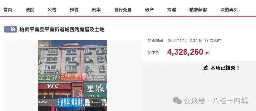 近日,在平南县司法拍卖市场上,就再次出现了一栋价值几百万的私人楼被拍卖,结果那是一个抢手,最终高价成交。此次拍卖的私人楼位于平南县平南街道城西路,这是一栋证载有7层,建筑面积达到了754.80平方米,土地面积102平方米。不过这栋房子实测有892.41平方米(含铁皮棚房),房子实际有9层,其中第8层铁皮棚房,第9层为楼梯盖。从加盖部分来看,这房子也不算严重的违建,毕竟8楼和9楼是铁皮房,不是钢筋混凝土的,如果要拆除的话,也不难。