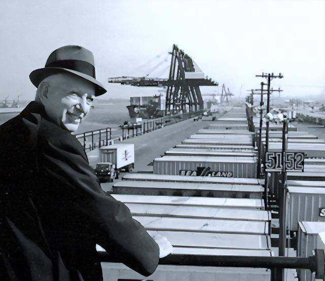 1956年他将一艘旧油轮改造为“理想号”,把58个统一规格的铁皮箱直接吊装上船,从纽约直达休斯顿。