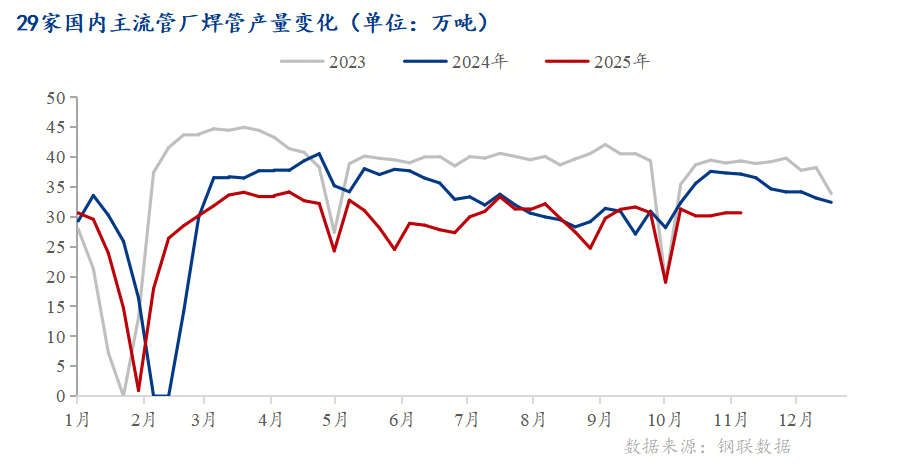 在未来几年内,我国钢铁行业仍将面临不小的挑战,钢管行业将维持激烈竞争态势,生产经营面临价格下跌、成本上升、效益下降等困难。尤其是在需求萎缩下,预计近几年国内焊管产能产量再度明显回升的可能性较小,但经历2025年的产能止降回升后,即使当前不稳定不确定因素较多,但在国家政策面扶持下,坚持稳字当头、稳中求进工作总基调,长远来看,预测明年焊管产量与需求在2025年的低基数上或将止降企稳,市场整体形势必定会稳步向前。